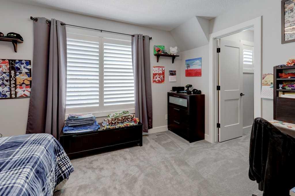 This exceptional 5-bedroom home offers over 3,700 sq. ft. of beautifully developed luxury living space, thoughtfully upgraded throughout and situated on the second-largest lot on the street backing onto Greenspace, creating an impressive presence and enhanced functionality. Built by McKee Homes with the upgraded Signature Design package, this residence combines timeless finishes with modern comfort. The main floor features 10’ ceilings, rich oak hardwood flooring, knock-down ceilings, and elegant rounded wall corners, creating a refined yet welcoming atmosphere. Triple-pane vinyl windows enhance energy efficiency and year-round comfort. The chef-inspired kitchen is both stylish and highly functional, showcasing higher-end granite countertops, black granite sinks, and floor-to-ceiling maple cabinetry with soft-close hinges. A Gigantic Island seats 6 people comfortably and is amazing for entertaining quests. Thoughtful storage upgrades include extra-deep pot and pan drawers, garbage and recycling pull-outs, extended island cabinetry for cookie sheets and cutting boards, tip-out trays, a second prep sink, and under-cabinet lighting. Premium appliances include a Gas range with double oven, Bosch dishwasher, and a GE Profile refrigerator with internal water dispenser. A matching granite wet bar in the fully developed basement continues the home’s upscale design. All bathrooms feature granite countertops, upgraded faucets and accessories, comfort-height energy-efficient toilets with slow-close lids, and tip-out trays. The main (kids’) bathroom includes a double vanity, while the primary ensuite offers a relaxing jetted tub. The builder-developed basement seamlessly matches the rest of the home and includes a wet bar, plush carpeting with Smart Cushion underlay and pet-protection layer, and generous living and entertaining space. Comfort and efficiency are paramount with two furnaces (separate systems for main/upper levels and basement), a heat recovery ventilation system, and a large air-conditioning unit serving the main and upper floors. Insulation has been upgraded to R22 on exterior walls, R20 in the garage, and R34 in the attic. The extended oversized garage includes a heater, while the home is wired for a hot tub. An exterior shed is built into the home with matching siding, a concrete slab, and electrical—meeting HOA requirements while offering exceptional storage. The beautifully manicured backyard is designed for outdoor living, featuring a large deck, hand-laid stone patio, outdoor fireplace, and privacy fencing ideal for a future hot tub (hot tub not included). Underground Sprinklers provide seasonal convenience watering your lawn! Power roller blinds on the rear of the home and wood shutters at the front complete the window treatments. With its extended width design, additional office space, premium finishes, and standout lot size, this home delivers luxury, efficiency, and everyday practicality in a truly impressive package.